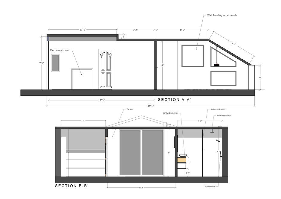 Floor plans, plumbing layouts, and electrical layouts with MDB access and LED integration.